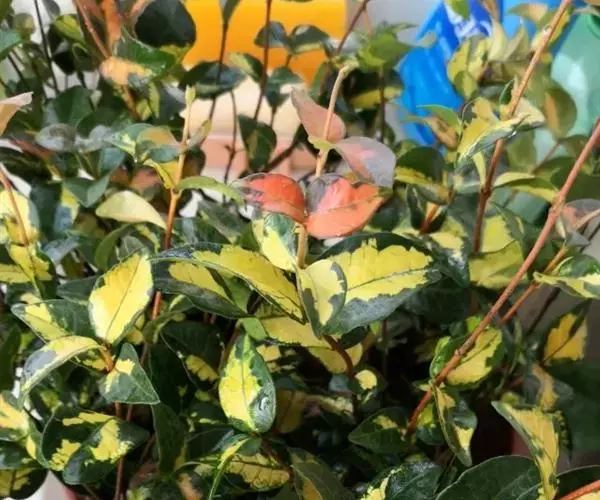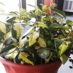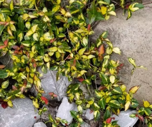 金叶络石(学名:Trachelospermum asitaticum)是常绿木质藤蔓植物,原产日本。新叶橙黄色,老叶有绿黄色的斑块,叶色绚丽多彩。生长旺盛,喜高温又耐荫,适应性广,耐旱耐涝耐寒耐热,可耐-12摄氏度的低温和43摄氏度的高温,抗病能力强。既是优良的攀援植物和地被植物,也是优良的盆栽植物。
