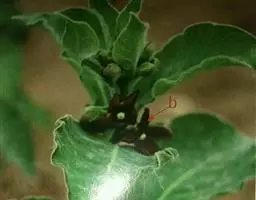 扦插基质采用泥炭、珍珠岩、蛭石等,按一定比例混合。插穗一般剪成卜5cm,留一两对叶片,插穗的一半插入土中,切忌过深或穗条叶片触及土壤。扦插后结合浇水喷施多菌灵等杀菌剂,以防基质及插穗感病。扦插后搭建覆膜的小拱棚,高度遮阳,保持拱棚内温度在20℃~25℃,每周配合浇水喷药防病一次。约15天生根,1个月内即可成苗。
