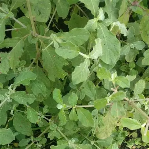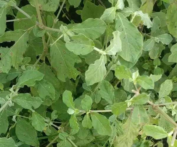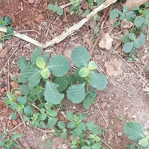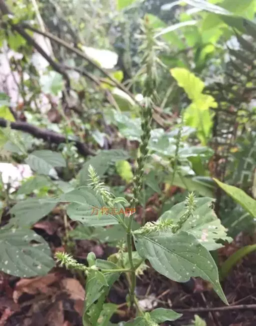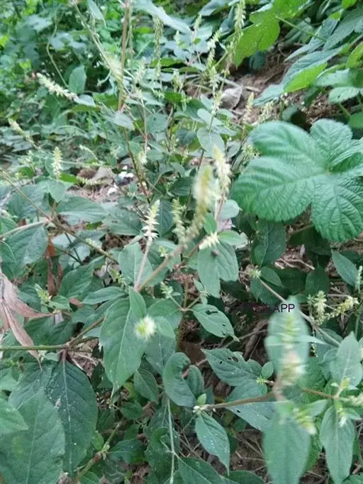 4、植物钝叶土牛膝,茎密生白色或黄色长柔毛。叶片倒卵形,长1.5~6.5厘米,宽2~4厘米,顶端圆钝,常有凸尖,基部宽楔形,边缘波状,两面密生柔毛。