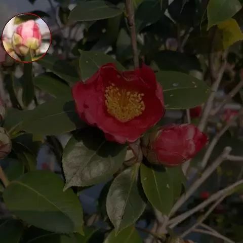 毛蕊红山茶,灌木至小乔木,嫩枝初时有白毛,不久变秃。叶薄革质,长圆形。花期冬春间,分布于中国四川、广西、贵州、云南等地区。