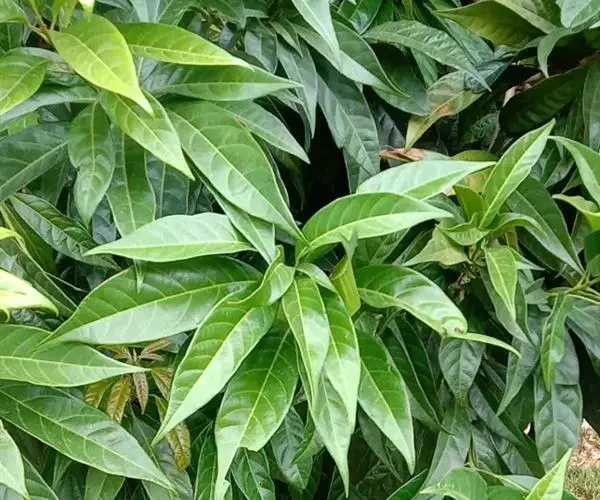 乔木,高达25m;幼嫩枝、叶疏生微星状毛,后变无毛。叶纸质,椭圆形,长圆状椭圆形或披针形,长6-22cm,宽1.5-6cm,顶端渐尖,稀急尖,基部楔形;小托叶2枚,钻状,长0.5mm,上部凋萎,基部稍膨大,干后黑色;叶柄长1-4cm,顶端枕状,基部具叶枕;托叶钻状,长1.5-2.5mm,有时基部外侧有1个腺体。