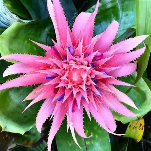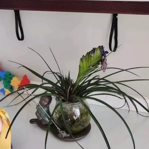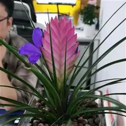 紫花凤梨,是凤梨科铁兰属的多年生草本植物。株高不及30厘米;叶片拱状线形,叶丛族生于短缩茎上,…