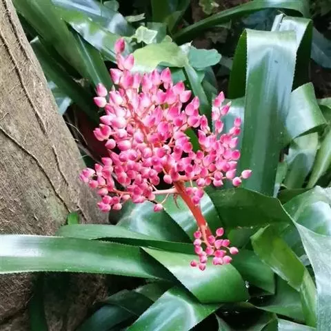 美叶光萼荷是凤梨科光萼荷属的多年生附生常绿草本植物。叶基生,莲座状叶丛基部围成筒状,…