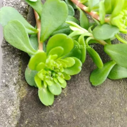 凹叶景天(拉丁文名:Sedum emarginatum Migo)别名:石板菜、九月寒、打不死、石板还阳、石雀还阳、岩板菜,.景天科景天属多年生草本植物。茎节的下部平卧于地面或地下、节上生有不定根;上部直立,淡紫色,略呈四棱形;叶片顶端圆而且有一个凹陷;枝叶密集如地毯,花较小,黄色,着生在花枝的顶端。花期5-6月,果期6月。室外越冬时部分叶片紫红色。耐旱,喜半阴环境。产云南、四川、湖北、湖南、江西、安徽、浙江、江苏、甘肃、陕西、福建等地。生于海拔600-1800米处山坡阴湿处。全草药用,可清热解毒,散瘀消肿,治跌打损伤、热疖、疮毒等病症。