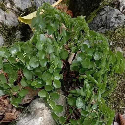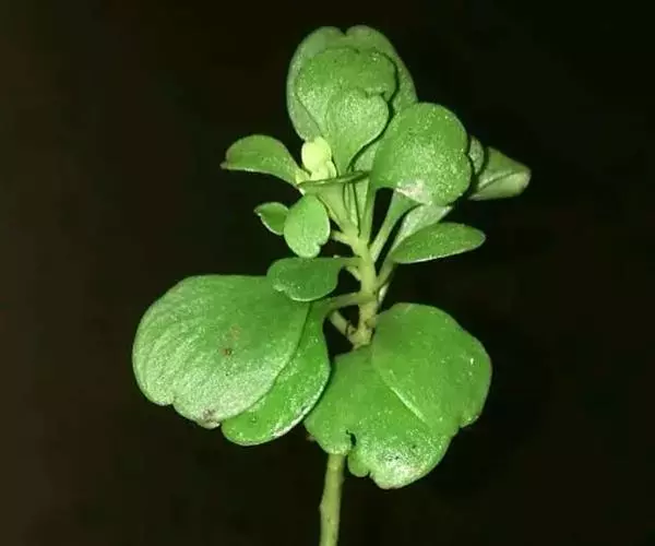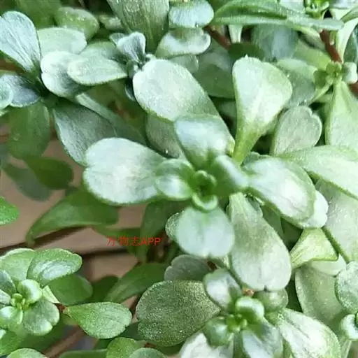 多年生草本。茎细弱,高10-15厘米。叶对生,匙状倒卵形至宽卵形,长1-2厘米,宽5-10毫米,先端圆,有微缺,基部渐狭,有短距。