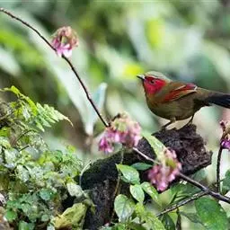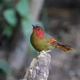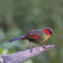 红翅薮鹛是噪眉科、薮鹛属中型鸟类,体长21-24厘米。头顶灰褐色,头侧和颈侧赤红色,上体橄榄褐色,…