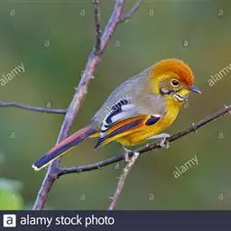 金头穗鹛小型鸟类,体长10~11厘米,是一种黄色小鸟。头顶金黄色有黑色纵纹,眼先黑色,…