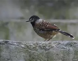 大噪鹛:中型鸟类,体长32-36厘米。额至头顶黑褐色,背栗褐色满杂以白色斑点,…