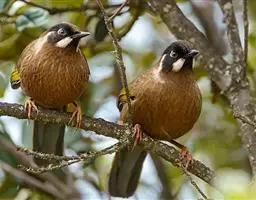 白颊噪鹛是雀形目噪鹛科噪鹛属鸟类,又称土画眉、小画眉、小噪鹃。成鸟额至头顶栗褐色,…