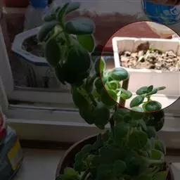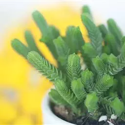 花椿 (学名:Crassula ‘Emerald’),又称玉梓。景天科,青锁龙属。杂交种,母本为玉椿,父本为苏珊乃(C. susannae)。叶片翠绿上覆极短柔毛,叶片交互对生;花开乳白色,五瓣,花朵簇生。