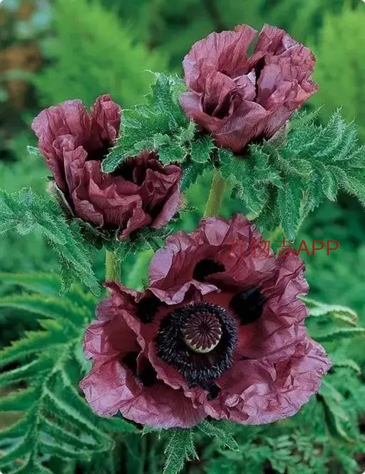 罂粟是一年生草本。茎高30-80厘米,分枝,有伸展的糙毛。叶互生,羽状深裂,裂片披针形或条状披针形,两面有糙毛。花蕾卵球形,有长梗,未开放时下垂;萼片绿色,花开后即脱落;花瓣4,紫红色,种植罂粟有多个花型和花色。基部常具深紫色斑,宽倒卵形或近圆形,花药黄色;雌蕊倒卵球形,柱头辐射状。花果期3-11月。