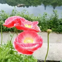 花单生;花梗长达25厘米,无毛或稀散生刚毛。花蕾卵圆状长圆形或宽卵形,长1.5-3.5厘米,宽1-3厘米,无毛;萼片2,宽卵形,绿色,边缘膜质;花瓣4,近圆形或近扇形,长4-7厘米,宽3-11厘米,边缘浅波状或各式分裂,白色、粉红色、红色、紫色或杂色;雄蕊多数,花丝线形,长1-1.5厘米,白色,花药长圆形,长3-6毫米,淡黄色;子房球形,直径1-2厘米,绿色,无毛,柱头(5-)8-12(-18),辐射状,连合成扁平的盘状体,盘边缘深裂,裂片具细圆齿。