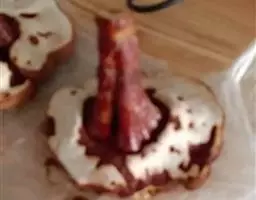 4:将拌好的面糊装入裱花袋,剪个小口,挤到发酵好的面包上即可