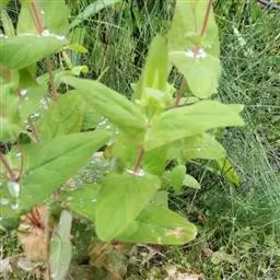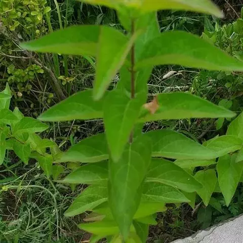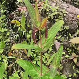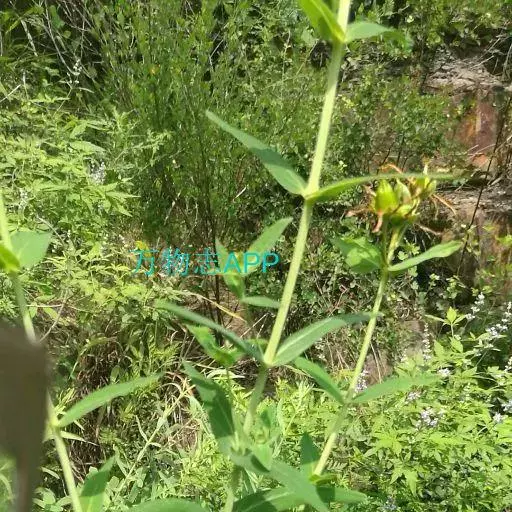 多年生草本,高0.5-1.3米。茎直立或在基部上升,单一或数茎丛生,不分枝或上部具分枝,有时于叶腋抽出小枝条,茎及枝条幼时具4棱,后明显具4纵线棱。叶无柄,叶片披针形、长圆状披针形、或长圆状卵形至椭圆形、或狭长圆形,长(2-)4-10厘米,宽(0.4-)1-2.7(3.5)厘米,先端渐尖、锐尖或钝形,基部楔形或心形而抱茎,全缘,坚纸质,上面绿色,下面通常淡绿色且散布淡色腺点,中脉、侧脉及近边缘脉下面明显,脉网较密。