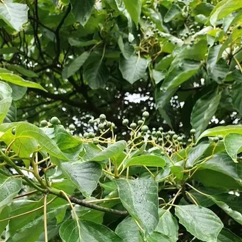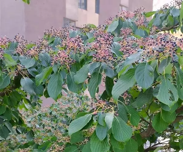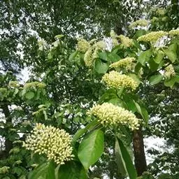 灯台树一般10年开花结果,10-30年为结果盛期,一般花期在5-6月,果熟期在9-10月。当果皮由绿色转为绿褐色时预示种子成熟,灯台树种子带翅,极容易飞散,所以要及时采收。果实采回后,放入清水中浸泡几小时,沤烂后搓去外果皮及果肉,掏洗核果。洗净后,用0.5%高锰酸钾溶液浸种2h或用0.3%硫酸铜溶液浸种4-6h后,用清水冲洗干挣,然后阴干。将种子与干净的湿河沙按1:3的比例混拌均匀,装于编织袋中备用。