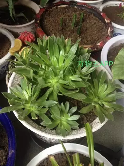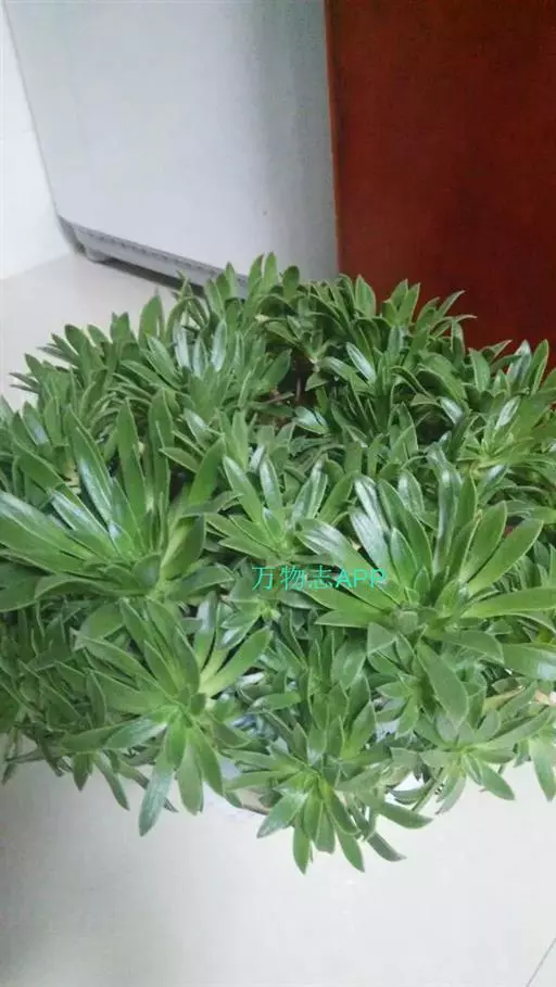 丛生垫状,小枝多叶,叶不易脱落,排列成莲座状,线皮针形,长6-9cm.宽0.6cm浅绿色,具红张,叶缘有0.2-0.4cm长的白毛,花金黄。