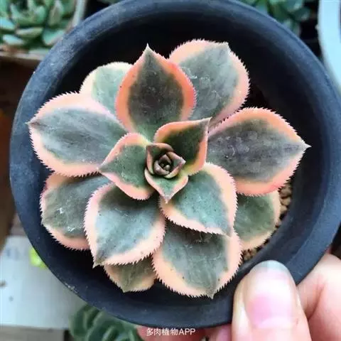 红缘莲花掌属蔷薇目、景天科植物,原产大西洋的加那利群岛。质厚,蓝绿色,被白霜,叶缘红褐色。聚伞花序,…