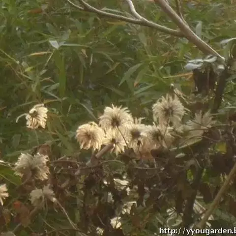 聚伞花序腋生,常只有1花,稀有2-5花,花序梗细瘦,与叶柄近于等长,无毛,下部有2-4对线状苞片,交叉对生;花钟状,直径2-2.5厘米;萼片4枚,较肥厚,白色或淡黄色,卵圆形或长方卵圆形,长1.5-2.2厘米,宽7-12毫米,顶端钝尖,外面疏生紧贴的绒毛,边缘具白色绒毛,内面无毛,但直的平行脉纹显著;雄蕊长1-1.2厘米,花药长椭圆形,花丝线形,具1脉,两边有长柔毛,长过花药;心皮被短柔毛,花柱被绢状毛。瘦果狭卵形,长3毫米,粗1毫米,被短柔毛,宿存花柱长达4.5厘米。花期11月至12月,果期翌年3月至4月。