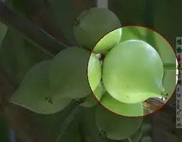 蒴果呈核果状,圆球形,直径1-1.3厘米,外果皮肉质,绿白色或淡黄白色,内果皮硬壳质;种子略带红色,长5-6毫米,宽2-3毫米。花期4-6月,果期7-9月。