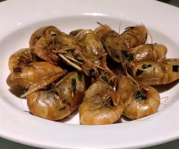 虾经油爆,表面油光润滑,虾壳薄亮透明,故又称“光明虾炙”;油爆虾分老爆、嫩爆两种。此菜是江南传统下酒佳品。
