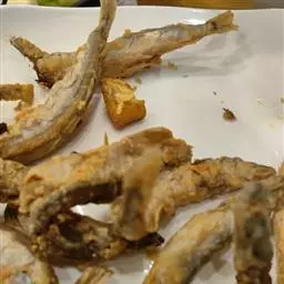 4. 炸至虾壳与虾肉分离即可,捞出沥干油份;
