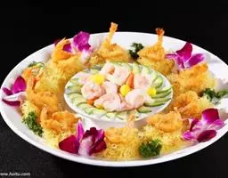 特色: 虾壳红艳松脆,若即若离,入口一添即脱,虾肉鲜嫩、略带甜酸,风味独特,是杭州传统名菜。