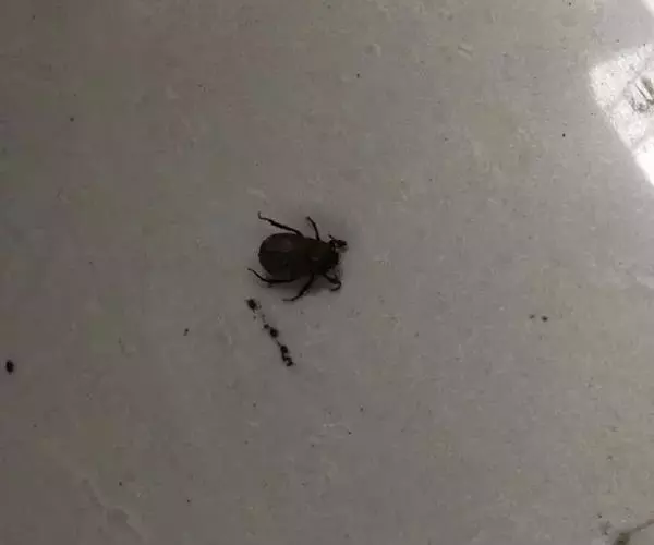 体长12-22毫米。体色与斑纹多变异,一般黑或黑褐色。背甲扁平,前端宽,中窝横向,颈沟明显。胸板中央有一“T”形黄斑,周缘呈黑褐色轮纹。腹部背面前端有肩突,心脏斑黄褐色,其两侧各有2个黑色筋点,呈梯形排列。腹背后部直至体末端有一棕黑色叶斑,边缘有黑色波纹,叶斑两侧为黄褐色。腹部腹面中央褐色,两侧各有一黑色条斑。纺器黑褐色。外雌器垂体呈黑色,弯曲部柔软,黄白色,有环纹,末部褐色,坚硬,边缘卷起。