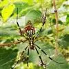 大腹园蛛雌蛛长达30毫米,灰褐色。多在庭院房前屋后及山洞和大石间布大型圆网,以捕飞虫为食。夜间居网的中心,白天在网旁的缝隙或树叶丛中隐蔽。卵袋产于墙或树皮裂缝等处,每卵袋中含卵500-1000个。内蒙古大部分地区均有分布,我国大部分省区市也有分布 。