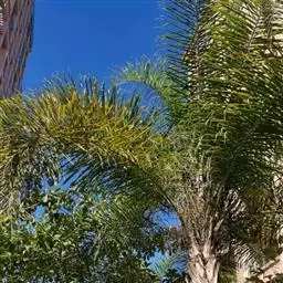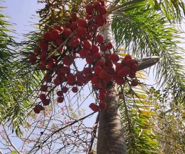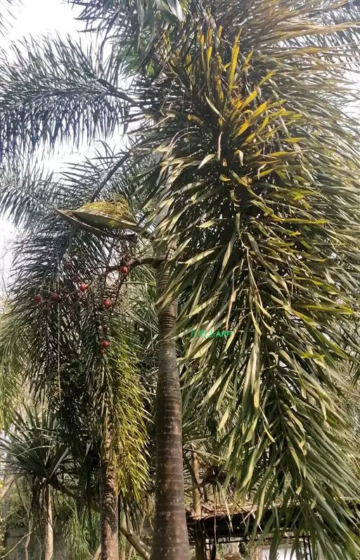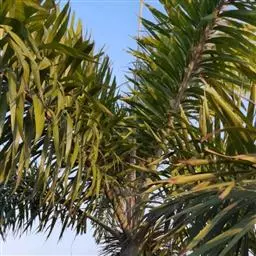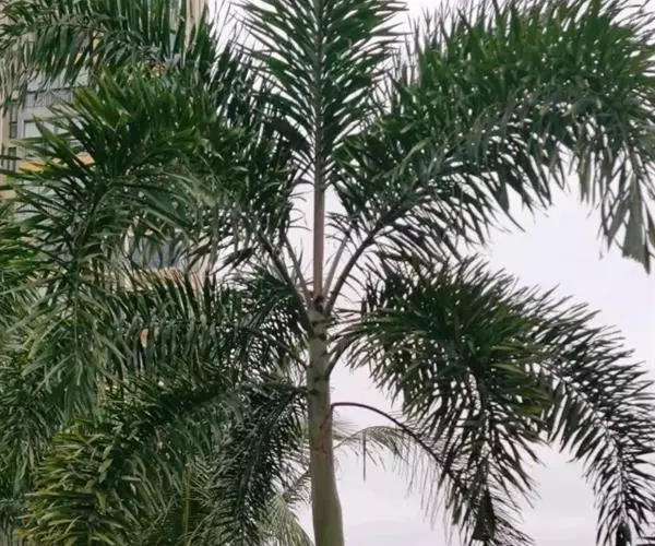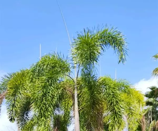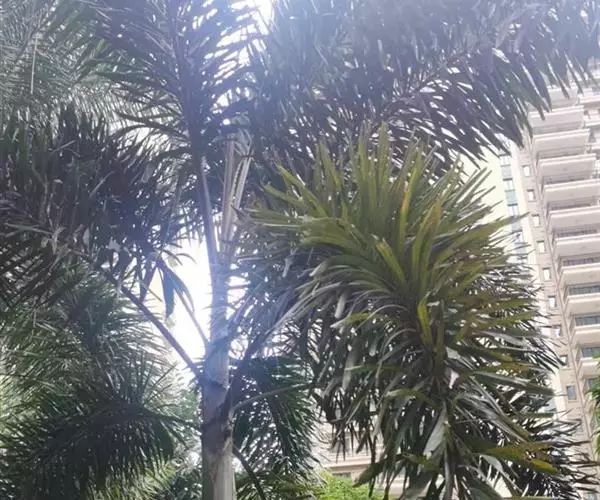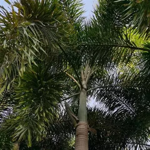 狐尾椰(学名:Wodyetia bifurcata A.K.Irvine)是棕榈科二枝棕属植物。植株高大、挺直秀美,茎干中部庞大,略似长花瓶状,银灰色。羽状复叶,小叶排列状似狐狸尾巴,叶弯垂。花单性,常3朵一组,中央为雌花,两侧为雄花。果椭圆形至卵圆形,熟时橙红色