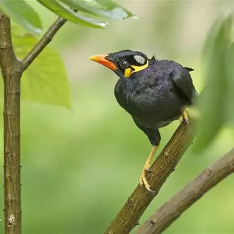 金冠树八哥为椋鸟科树八哥属的鸟类。体长约23厘米,闪辉黑色。特征为具翼斑及颏黄色,脸颊裸露皮肤粉黄色。…