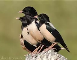 粉红椋鸟:中等体型,成鸟体长19-22厘米,体重60-73克,飞羽、尾羽为亮黑色,雌鸟与雄鸟毛色相似,…