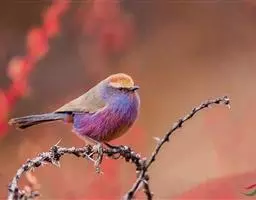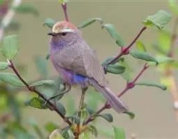 花彩雀莺:体长9-12厘米,是一种毛茸茸偏紫色的雀莺。顶冠棕色,眉纹白。尾长,羽毛松软。…