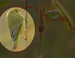 极北柳莺:体长11-13厘米,体小偏灰橄榄色,具明显的黄白色长眉纹,眼先及过眼纹近黑。上体概呈灰橄…