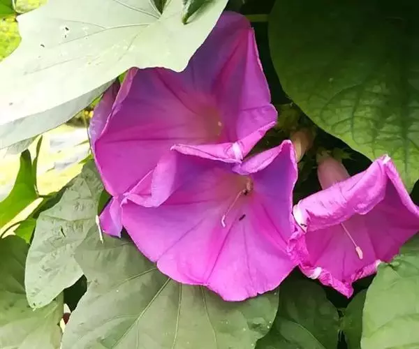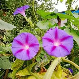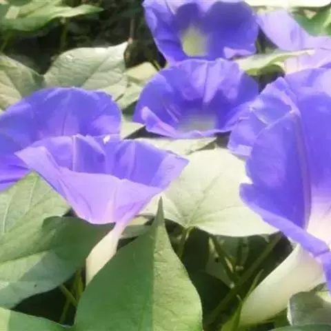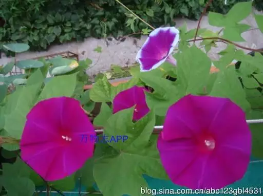 大花牵牛清晨开放,花大色艳,是夏秋重要的蔓性花卉。适用于花架、篱垣,为庭院及居室的遮荫植物。也可盆栽或作地被种植,别有风趣。
