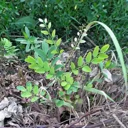 (2)泥沙催芽法:选背风向阳处,用砖、石块或木板做成方形或长方形的温床。床内先铺一 这是肥皂角两年生苗 层15cm厚的湿沙,然后将种子和湿沙按1:3的比例充分混合,均匀地放在温床内,最后在种子层上再覆一层1-2cm厚的湿沙,上覆塑料薄膜。为了增温,傍晚可加盖草苫,天热时可将塑料薄膜掀起一部分通风降温。温度保持在25-35°C,经常检查,干时及时喷水,霉烂种子及时捡出,一般情况下10-20d即可陆续破壳露出胚根。