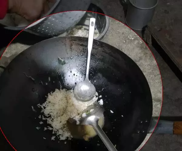 5.放花菜后盖上盖焖一会;