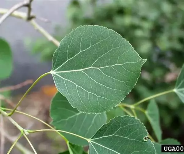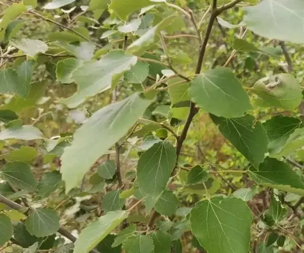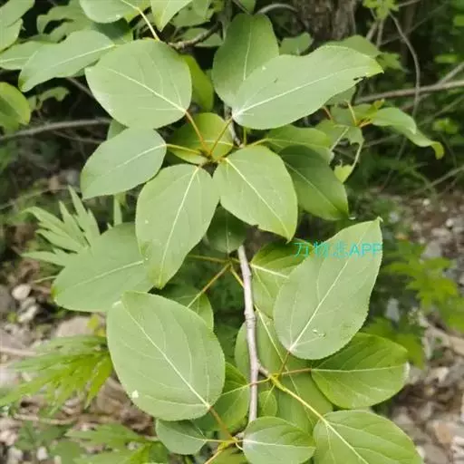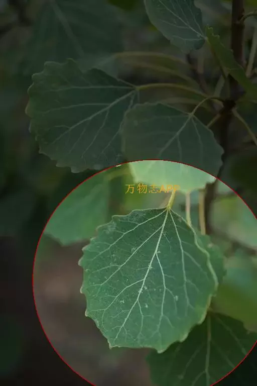 卵叶山杨(植物研究):叶卵形,长4-6厘米,宽2.5-4.5厘米,先端急尖,基部圆形或阔楔形,边缘具粗锯齿。分布于甘肃、陕西、山西、河北。生长于海拔600-1800米的山坡。