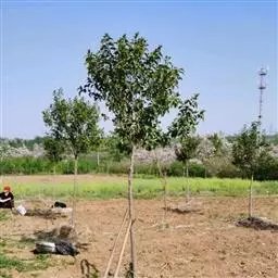 造林方法:秋季或春季造林皆可,干旱地区以春季较好,采用地径1厘米以上的壮苗,穴状整地,穴面50×50厘米,深40厘米,穴底填一层表层肥土,做到深埋,根系舒展和砸实;水土流失严重的黄土丘陵坡地宜采用水平沟整地方式,造林密度株行距2×2米。