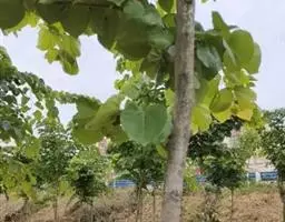 埋根方法:春季土壤解冻后,在整好地的苗床上埋种根,大头朝上,直埋,株行距25×40厘米,不露根头,踏实,为防止伤口腐烂,不浇水,半月后即可出芽,进行除草和水肥管理,当年苗高可达1米以上,即可出圃造林。