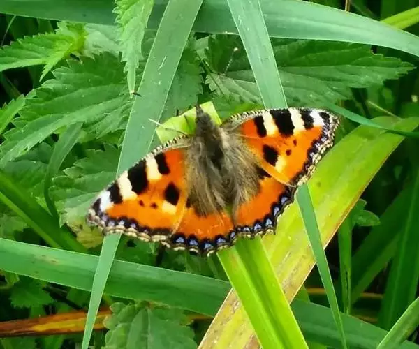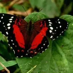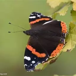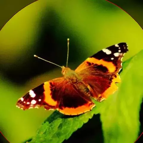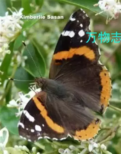 优红蛱蝶(学名:Vanessa atalanta):翼展4.5-12厘米。是一种美丽的蝴蝶。色彩鲜艳,花纹相当复杂。前足相当退化,短小无爪。前翅R脉5条,常共柄。卵呈半圆球形。幼虫头上常有突起,体节上有枝刺,腹足趾钩1至3序中列式。蛹为垂蛹。