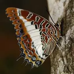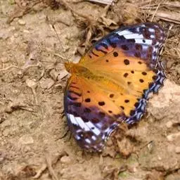 蛱蝶的成虫性成熟后,在蛹中沿着头和胸破壳钻出,刚羽化的蝴蝶翅膀皱褶和腹部膨胀,这时的蝴蝶无法躲避天敌,翅膀展开后,蛱蝶就可以飞翔了,蛱蝶的前后翅不同步扇动,成虫以腐烂果实的汁液为食物。