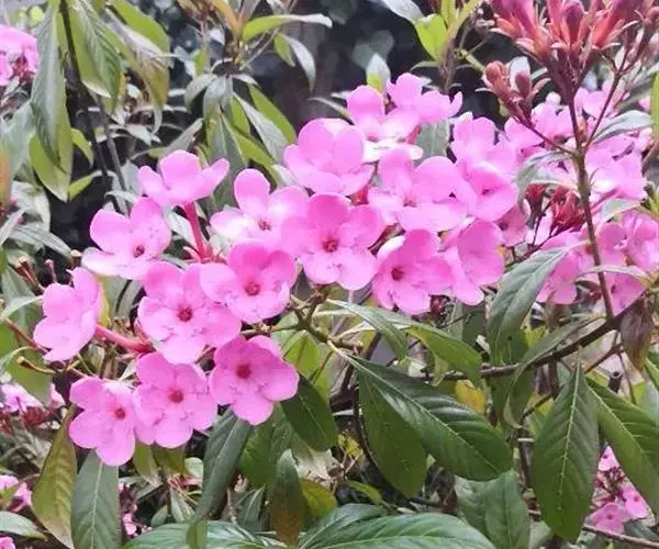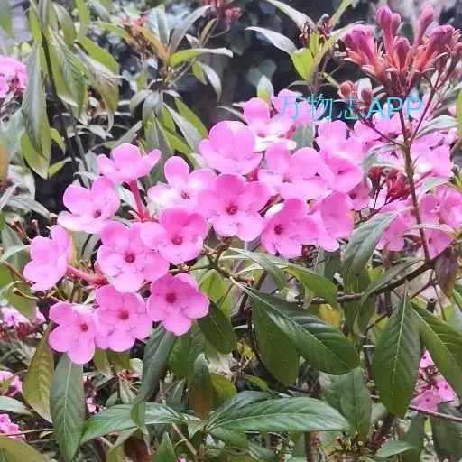 滇丁香(原变种),灌木或乔木,高2-10米,多分枝;小枝近圆柱形,有明显的皮孔。叶纸 滇丁香花叶 质,长圆形、长圆状披针形或广椭圆形,长5-22厘米,宽2-8厘米,顶端短渐尖或尾状渐尖,基部楔形或渐狭,全缘,上面无毛,下面常较苍白,无毛或被柔毛,或仅沿脉上被柔毛,常在脉腋内有簇毛;中脉在上面平坦,在下面凸起,侧脉9-14对,与中脉成45度角伸出,在上面平坦,在下面稍凸起;叶柄长1-3.5厘米,无毛或被柔毛;托叶三角形,长约1厘米;顶端长尖,无毛,脱落。伞房状的聚伞花序顶生,多花;苞片叶状,线状披针形,长1.5厘米,无毛,脱落;总花梗无毛;花美丽,芳香;花梗长约5毫米,无毛;萼管无毛或有秕糠状疏毛或疏柔毛,萼裂片近叶状,披针形,顶端尖,长0.8-1.8厘米,宽2-6毫米,常有缘毛,外面有时有疏柔毛;花冠红色,少为白色,高脚碟状,冠管细圆柱形,长2-6厘米,宽约4毫米,花冠裂片近圆形,长1.5-2.2厘米,顶部宽约1.5厘米,在每一裂片间的内面基部有2个片状附属物;雄蕊着生在冠管喉部,花丝长约2毫米,花药线状长圆形,长4.5-5.5毫米,内藏或稍伸出;柱头与花柱相似,顶端2裂,内藏或稍伸出,子房2室,胚珠多数。蒴果近圆筒形或倒卵状长圆形,有棱,无毛或有疏短柔毛,长1.5-2.5厘米,直径0.5-1厘米;种子多数,近椭圆形,两端具翅,连翅长约4毫米。