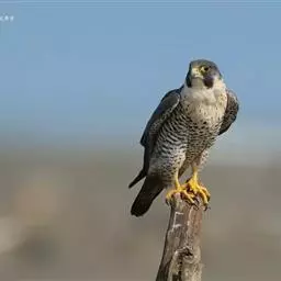 游隼yóu sǔn:是隼科、隼属的中型猛禽,共有18个亚种。体长41-50厘米。翅长而尖,眼周黄色,…