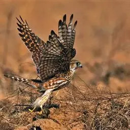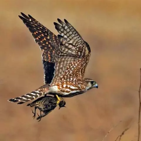 燕隼:是隼科、隼属的鸟类。体长约36厘米,体重140-340克。体形比猎隼、游隼等都小,为小型猛禽,…