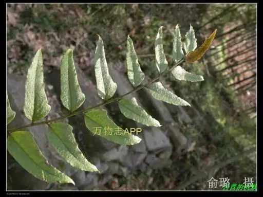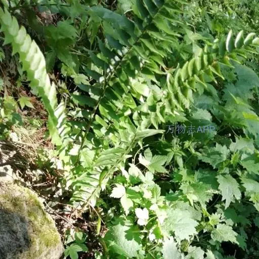 多年生草本,高50~100cm。根茎粗壮,斜生,有较多坚硬的叶柄残基及黑色细根,密被深褐色、长披针形的大鳞片。叶簇生于根茎顶端;叶柄长10~25cm,基部以上直达叶轴密生棕色条形至钻形狭鳞片,叶片草质,倒披针形,长60~100cm,中部稍上处宽20~25cm,二回羽状全裂或深裂;羽片无柄,裂片密接,长圆形,圆头或圆截头,近全缘或先端有钝锯齿;上面深绿色,下面淡绿色,侧脉羽状分叉。孢子叶与营养叶同形,孢子囊群着生于叶中部以上的羽片上,生于叶背小脉中部以下,囊群盖肾形或圆肾形,棕色。