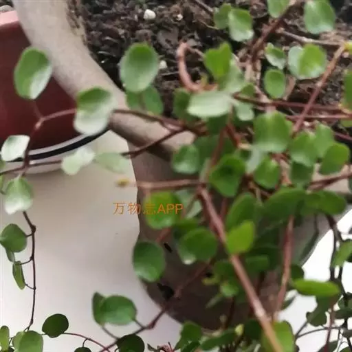 多年生常绿藤本,呈匍匐状,黑色枝条长达6米长,圆形,绿色,茎红褐色或黑褐色,似铁丝茎,形成一个宽达2米的密集土堆,爬过其他植物。它会爬到5米或更高的高度覆盖树木。叶小,互生,心形或近圆形,先端尖,基部近截平,叶子长2厘米。花小,黄绿色。种子黑色。 [6-7]