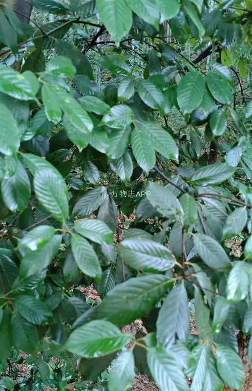 叶片革质,倒卵状椭圆形或长椭圆形,长6-13厘米,宽2-5.5厘米,顶端渐尖或短尾状,基部圆形或宽楔形,叶缘中部以上有疏锯齿,侧脉每边9-13条,叶背支脉明显,叶面无毛,叶背有整齐平伏白色单毛,老时渐脱落,常有白色鳞秕;叶柄长1-3厘米。