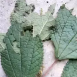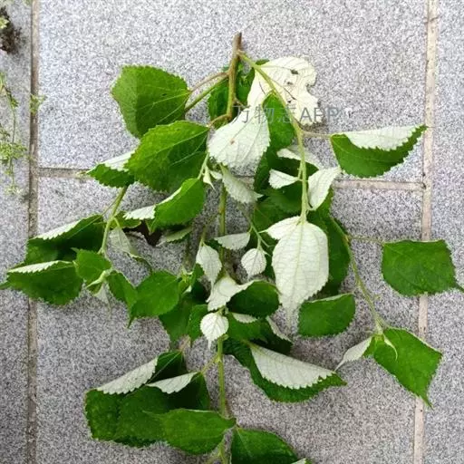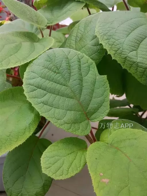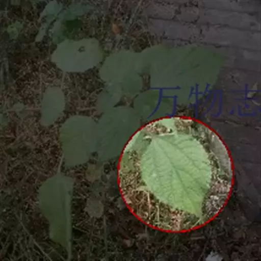 贴毛苎麻(变种) 与苎麻的区别:茎和叶柄只被贴伏的短糙毛,无开展的长硬毛;叶片多为卵形,稀圆卵形,基部突收狭呈楔形;托叶基部合生。