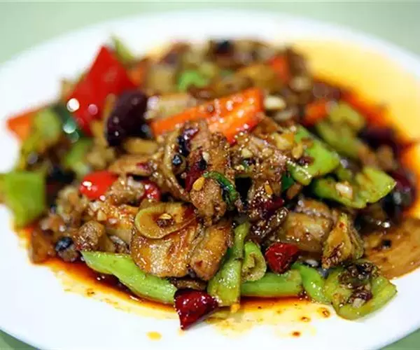 蒜香回锅肉是以五花肉、素鸡为原料制作而成的一道美食。