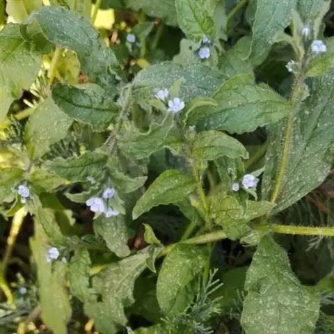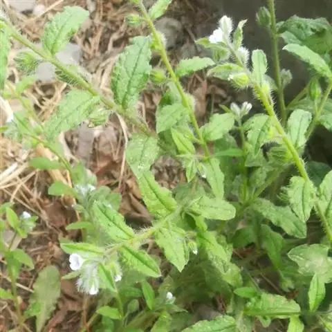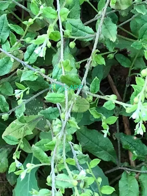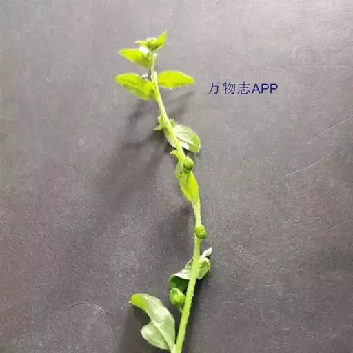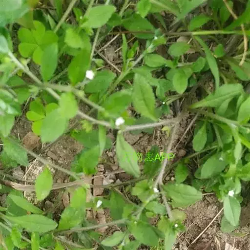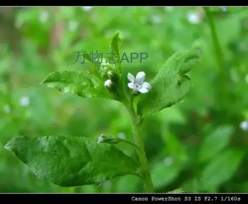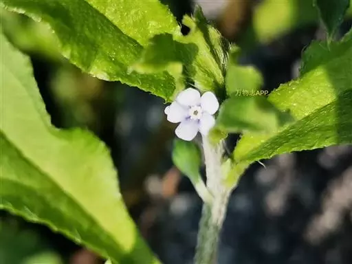 一年生草本,高15-30厘米。茎细弱,丛生,直立或平卧,多分枝,被向上贴伏的糙伏毛。叶椭圆形或狭椭圆形,长1-2.5厘米,宽0.5-1厘米,先端钝,具小尖,基部宽楔形,上下两面被向上贴伏的糙伏毛或短硬毛。花序柔弱,细长,长10-20厘米;苞片椭圆形或狭卵形,长0.5-1厘米,宽3-8毫米,被伏毛或硬毛;花梗短,长1-2毫米,果期不增长或稍增长;花萼长1-1.5毫米,果期增大,长约3毫米,外面密生向上的伏毛,内面无毛或中部以上散生伏毛,裂片披针形或卵状披针形,裂至近基部;花冠蓝色或淡蓝色,长1.5-1.8毫米,基部直径1毫米,檐部直径2.5-3毫米,裂片圆形,长宽约1毫米,喉部有5个梯形的附属物,附属物高约0.2毫米;花柱圆柱形,极短,长约0.5毫米,约为花萼1/3或不及。小坚果肾形,长1-1.2毫米,腹面具纵椭圆形的环状凹陷。花果期2-10月。